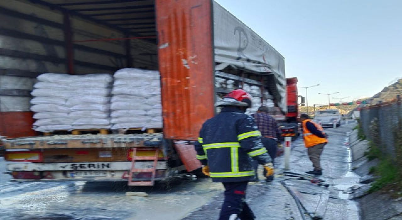 Soya Yüklü Tırda Yangın Çıktı, İtfaiye Kısa Sürede Müdahale Etti